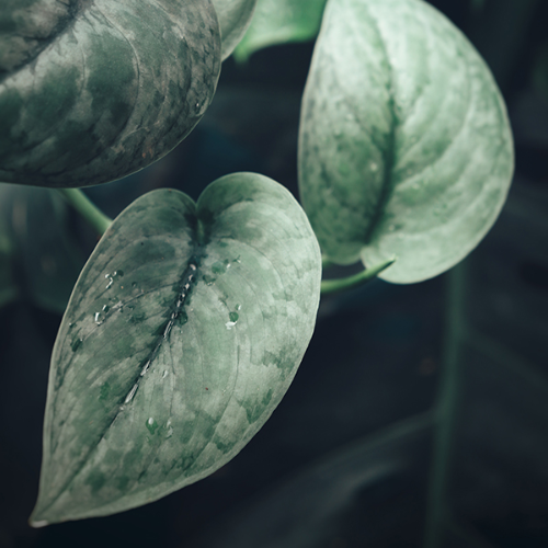 새틴 포토스로 불리기도하는 스킨답서스 또한 수경재배로 키우기 쉬운 실내식물 중 하나입니다. 생장점이 있는 줄기의 많은 부분에서 쉽게 뿌리를 내릴 수 있으며 강한 생명력을 가지고 있는 이 식물은 줄기에 비해 크고 넓은 잎과 잎의 독특한 무늬 덕분에 많은 매니아층을 형성하고 있습니다.